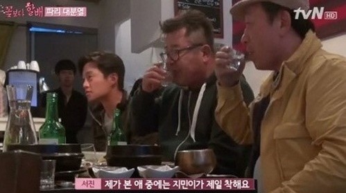 과거 tvN ‘꽃보다 할배’에서 이서진은 이순재, 백일섭, 박근형, 신구와 함께 에펠탑 관광을 마친 후 어느 한식당에 들러 함께 식사했다.