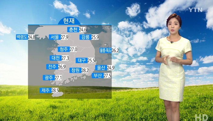 현재 서울 기온 27.9도, 청주 27도, 대구 25.5도를 가리키고 있다.