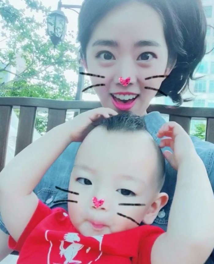 사진속 한은서는 조카를 무릎에 앉히고 귀여운 이모티콘을 장착해 행복한 일상을 보이고 있다.
