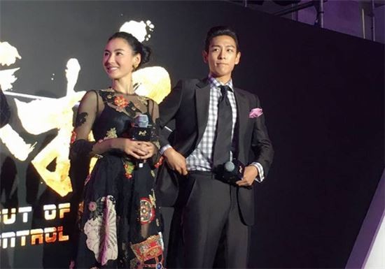 장백지는 과거 자신의 페이스북을 통해서 탑과 영화 ‘아웃 오브 컨트롤’과 관련된 행사에 임하고 있는 사진을 게재했다.