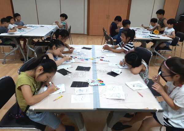 성동구는 오는 24일까지 여름방학을 맞은 응봉초등학교 학생 16명을 대상으로 ‘토탈공예교실’을 운영한다. 사진은 응봉초 어린이들이 토탈공예교실 활동에 참여하고 있는 모습.(사진제공=성동구청)
