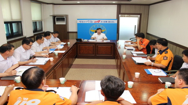 경기 이천소방서에서는 지난 7일 올해 상반기 주요 추진업무에 대한 검토와 발전방향을 제시하고자 '소방행정 업무 추진 평가보고회'를 개최했다. 사진은 이경우 서장(가운데)과 관계자들이 회의하는 모습.(사진제공=이천소방서)
