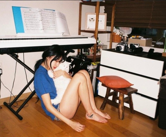 사진 속 문현아는 집에서 고양이를 안고 편안한 자세를 취하고 있다. 발에 새긴 문신과 핫팬츠 밑으로 드러난 각선미가 눈길을 끈다.