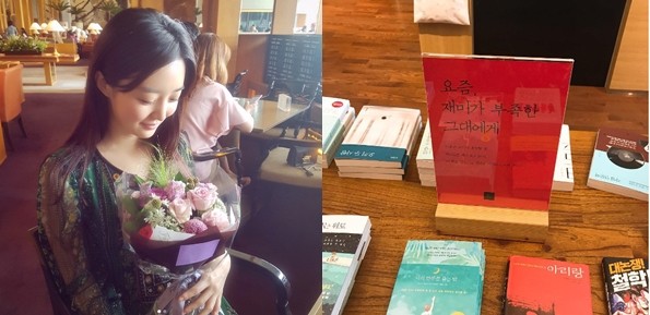 공개된 사진 속에는 '요즘, 재미가 부족한 그대에게'라는 제목의 도서 한 권에 포커스가 맞춰져 있다.