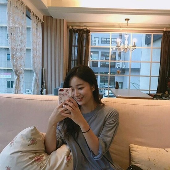 사진 속에는 홍은정이 핸드폰을 들고 인형같은 미모를 자랑하며 미소짓고 있는 모습이 담겨있다.
