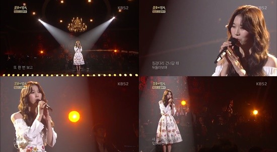 이날 무대에 오른 천단비는 곡에 어울리는 화이트 오프숄더 상의에 꽃무늬 스커트를 코디해 더욱 분위기에 집중 할 수 있게 하며 그의 풍부한 역량을 십분 느낄 수 있게 해줬다.