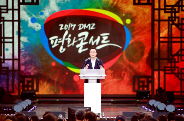 | ▲ 사진은 정기열 경기도의장이 최근 파주 임진각 평화누리공원에서 열린 ‘2017 DMZ 평화콘서트’에 참석해 축사하는 모습.(사진제공=경기도의회) | ||