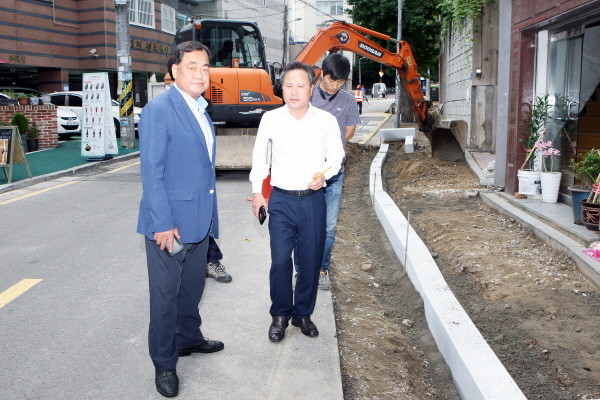 현장을 찾은 장 의원은 구청 도로과 팀장, 담당 공무원과 함께 보도정비 공사 현장을 살펴보고 인근 주민을 만나 공사에 따른 불편사항 등의 의견을 듣는 시간을 가진 후, 구청 및 공사 관계자와 함께 공사 불편사항에 대해 논의했다.