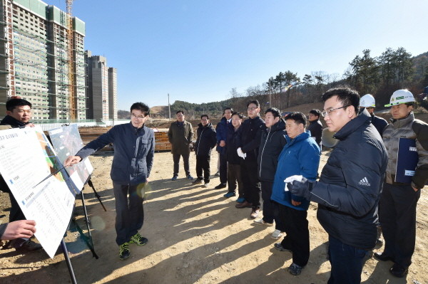 | ▲ 지난해 11월24일 행정사무감사 기간 중 주요사업 현장을 방문해 관계자로부터 사업추진 설명을 듣고 있는 도시건설위원회 위원들.(사진제공=용인시의회) | ||