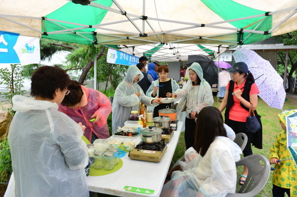 경기 양주시농업기술센터는 지난 15일 도시민과 농업인의 즐거운 만남을 주제로 사이버농업인연구회 팜파티(Farm-party)를 개최했다. 사진은 파티 참여자들이 블루베리잼을 만들어 보는 모습.(사진제공=양주시청)