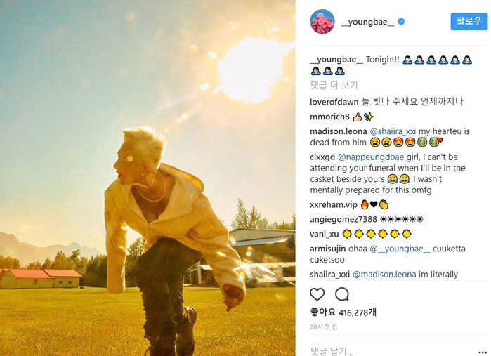 16일 태양은 자신의 SNS에 "Tonight!"이라는 글과 함께 한 장의 사진을 게재했다.