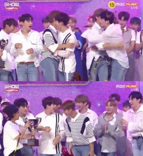 데뷔와 동시에 1위에 오르자 워너원 멤버들은 놀라움을 감추지 못했다. 워너원 멤버들은 서로를 부둥켜 안고 기쁨을 함께 나눴다.