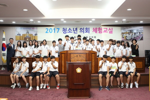 이 의원은 이날 체험활동에 참석한 강동중학교 학생 37명과 함께 체험활동을 진행하며 지방의회의 기능과 역할을 알기 쉽게 설명해줬다. 또한 학생들은 시나리오에 따라 의장과 의원 등으로 역할을 분담해 직접 조례안 상정부터 의결에 이르기까지 전 과정을 실제와 똑같이 진행했다.