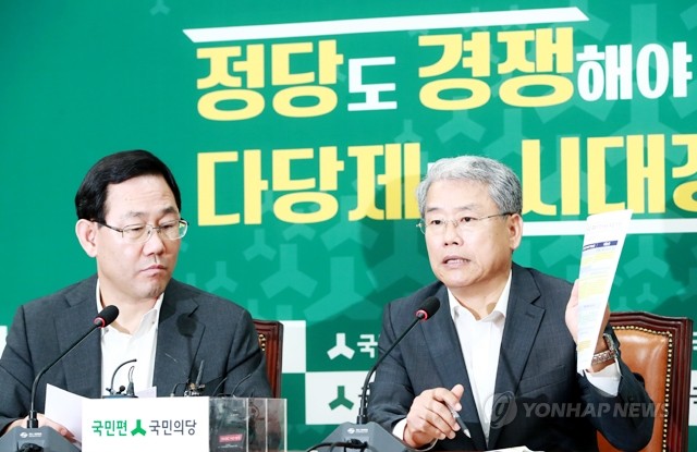 국민의당 김동철 원내대표(오른쪽)와 바른정당 주호영 원내대표가 17일 오전 국회 국민의당 원내대표실에서 이유정 헌법재판소 재판관 후보자 지명 철회를 촉구하며 공동 기자 간담회를 갖고 있다.