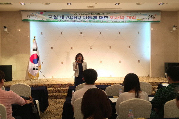 경북 구미교육지원청 Wee센터는 지난 17일 파크호텔에서 50여명의 초등교사를 위한 상담역량강화 연수를 실시했다. 사진은 용문상담심리대학원 이성직 교수가 '교실 내 ADHD아동에 대한 이해 및 개입'이라는 주제로 강의를 진행하는 모습.(사진제공=구미교육지원청)