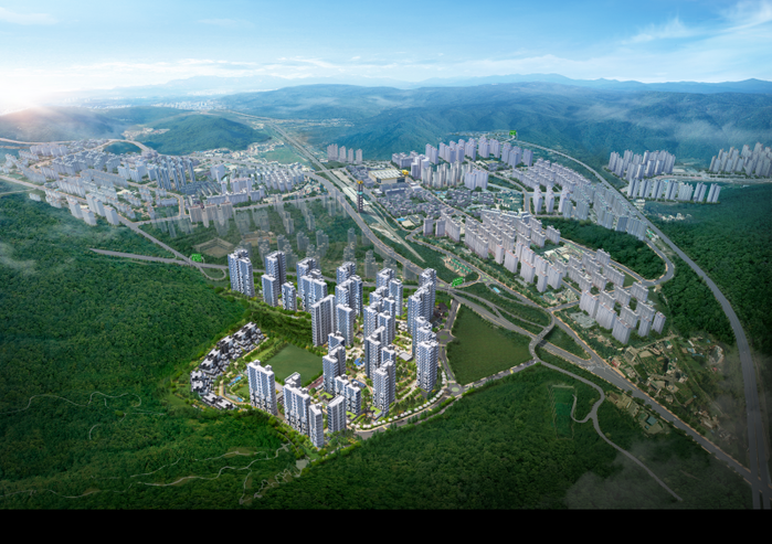 이러한 가운데 총 면적 19만8000㎡의 경관 녹지 등을 보유하고 있는 대단지 아파트가 분양해 눈길을 끈다. 경기도 남양주시 호평동 산37-19번지 일원에 위치하는 ‘두산 알프하임(항공조감도)’이 주인공이다.