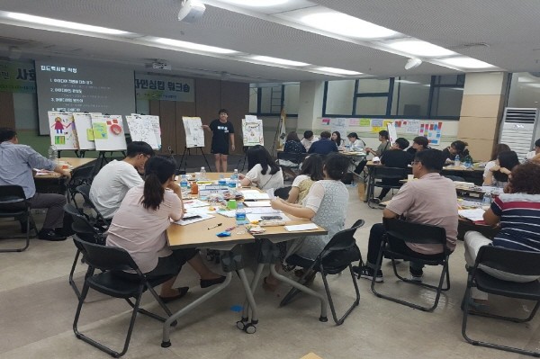 경기 평택시가 지난 19일 평생학습센터 강의실에서 ‘2017년 평택시민 아이디어 실행대회’ 워크숍을 개최했다. 사진은 워크숍에 참석한 관계자들이 대회에 출전한 한 팀의 프레젠테이션을 청취하고 있는 모습.(사진제공=평택시청)
