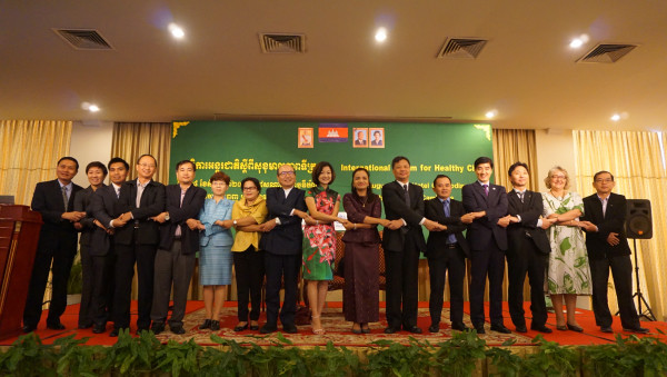서울 강동구가 최근 캄보디아 프놈펜에서 열린 '제21차 건강도시연맹 운영위원회 및 국제포럼'에 AFHC 운영위원 및 AFHC 한국 지부 대표로 참석했다. 사진은 기념촬영을 하는 이해식 구청장(오른쪽에서 네번째)의 모습.(사진제공=강동구청)