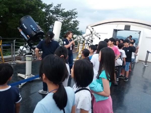 최근 은평구 진관동 주민자치위원회가 경기 양주시 장흥면에 위치한 ‘송암 스페이스 센터’에서 천체투영관 관람, 야광별자리 만들기 등의 체험을 하는 '어린이 별자리 체험학습'을 실시했다. 사진은 망원경으로 별자리를 살펴보는 어린이들의 모습.(사진제공=은평구청)