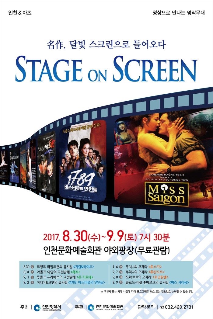 이번 공연에서는 데이빗 핫셀호프가 열연하는 브로드웨이 뮤지컬 <지킬&하이드>, 프랑스 뮤지컬의 거장, 도브 아티아와 알버트 코엔이 제작한 뮤지컬 <1789, 바스티유의 연인들> 그리고 25주년 특별공연으로 제작된 영국 웨스트엔드 뮤지컬 <미스 사이공>이 ‘2017 스테이지 온 스크린’의 전체일정 중간 중간에 포진되어 관객들을 유혹한다.