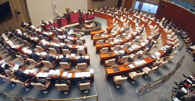 22일 오전 국회 예산결산특별위원회 전체회의에서 정부측 좌석(왼쪽)은 꽉찬 반면 의원석(오른쪽)은 빈자리가 곳곳에서 눈에 띄고 있다.
