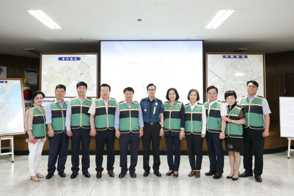 | ▲ 구로경찰서 을지연습 종합상황실을 방문해 훈련 중인 직원들을 격려한 구로구의회 의원들의 모습.(사진제공=구로구의회) | ||