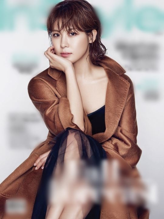 화보 속 하지원은 짙은 브라운 컬러의 트렌치 코트를 입고 가슴이 깊게 파인 블랙 원피스 차림이다.