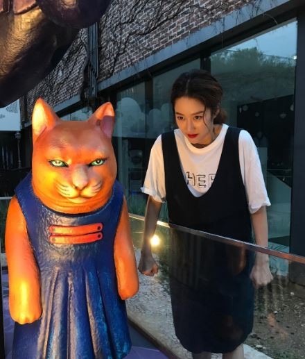 공개된 사진 속 고양이 동상 앞에서 포즈를 취하고 있는 전혜빈의 모습이 담겨있다. 특히 그의 장난기 가득한 표정이 눈길을 끈다.