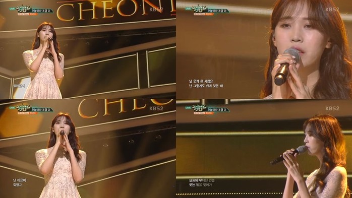 25일 KBS2 '뮤직뱅크'에 출연한 천단비는 독보적인 목소리와 깊이 감있는 목소리로 예성과의 하모니를 소화해냈다.
