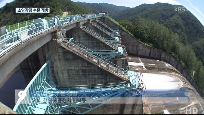 굳게 닫혀있던 소양강댐의 수문이 조금씩 열리더니 댐 안에 고여있던 물이 힘차게 쏟아져 내렸다.