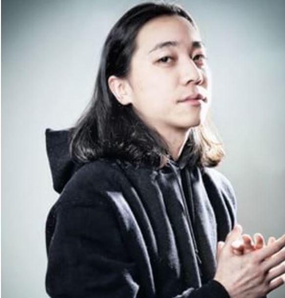 온라인 커뮤니티에 게재 된 이 사진 속 넉살은 블랙후드티에 어깨까지 닿는 웨이브진 머리를 하고 카메라를 바라보고 있다.