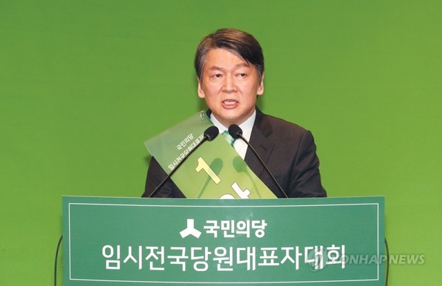 국민의당 안철수 새 대표가 27일 오후 국회 의원회관에서 열린 임시전국당원대표자대회에서 새 대표로 선출된 뒤 연설하고 있다.