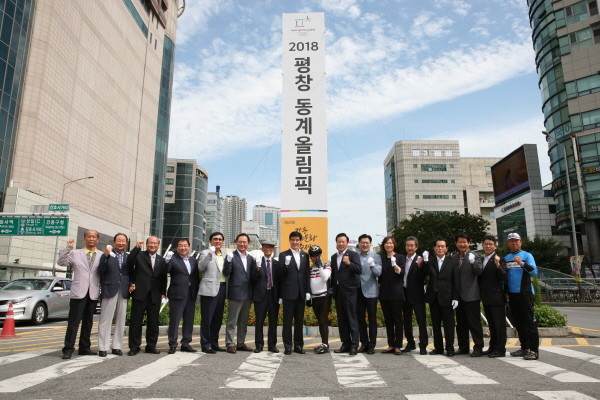 이해식 강동구청장, 평창 동계올림픽 홍보탑 제막식
