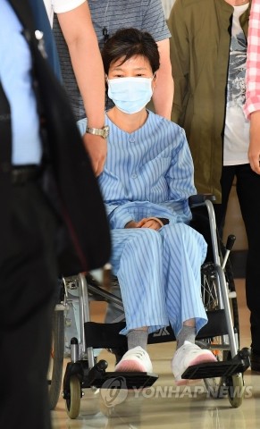 | ▲ 구속수감중인 박근혜 전 대통령이 허리 질환 치료차 30일 오전 서울 서초구 서초동 서울성모병원에서 진료를 받은 뒤 환자복을 입고 휠체어를 탄 채 병원을 빠져 나가고 있다.(사진제공=연합뉴스) | ||
