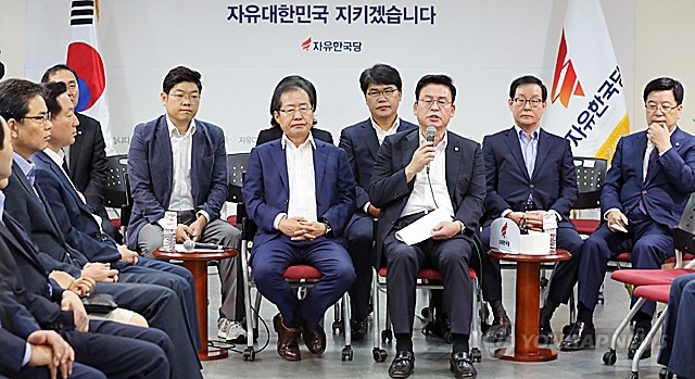 자유한국당 정우택 원내대표가 30일 오전 서울 여의도 당사에서 열린 당대표 및 최고위원·초선의원 연석회의에서 발언하고 있다.