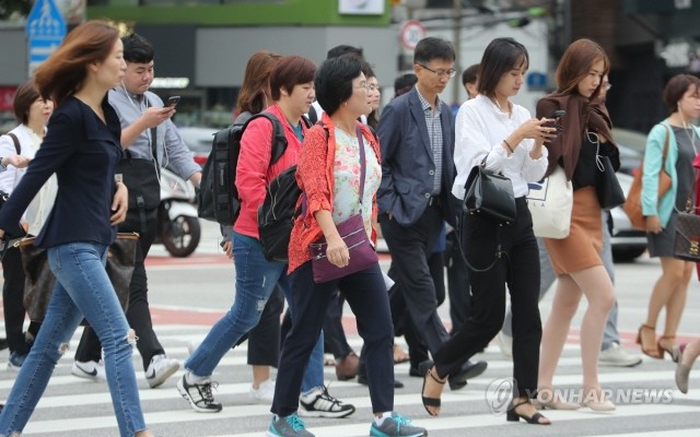서울 아침 기온이 16도까지 내려가는 등 흐리고 서늘한 날씨를 보인 30일 오전 긴소매 옷을 입은 시민들이 서울 광화문광장 앞을 지나고 있다.