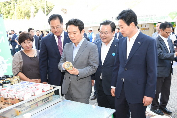 경기 포천시는 지난 29~31일 3일간 내촌면 소재 베어스타운리조트에서 ‘제17회 한국농업경영인 경기도대회’를 개최하고 성황리에 마무리했다. 사진은 대회에 방문한 남경필 경기도지사(가운데)와와 김종천 시장(오른쪽)이 부스를 둘러보는 모습.(사진제공=포천시청)