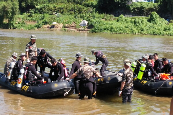 경기 양평군 해병대전우회 60명이 최근 양근대교 아래에서 수중정화 활동을 실시해 총 10여톤의 쓰레기를 수거했다. 사진은 고무보트를 타고 수중쓰레기 수거작업을 실시하고 있는 해병대전우회원들의 모습.(사진제공=양평군청)