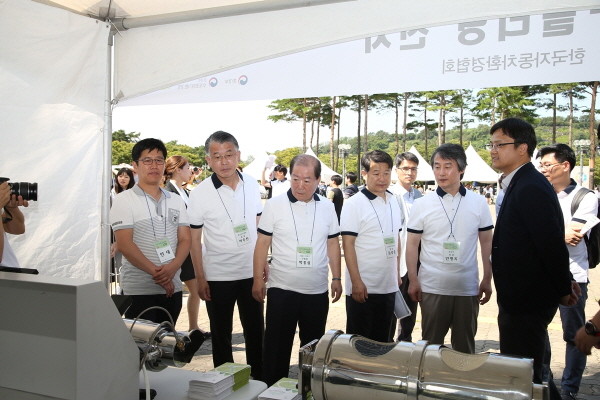 지난 2일 오전 박홍섭 서울 마포구청장(왼쪽에서 세번째)이 월드컵공원 평화광장에서 열린 '2017년 친환경 운전왕' 선발대회에 참석해 안병옥 환경부차관(왼쪽에서 다섯번째) 등과 함께 관계자의 설명을 듣고 있다.