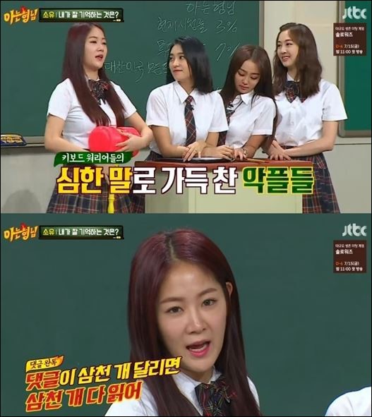 이어 소유는 "댓글이 3000개면 그 댓글을 모두 읽는다. 가장 충격이었던 악플은 '못생겼다', '못되게 생겼다'였다"고 설명했다.