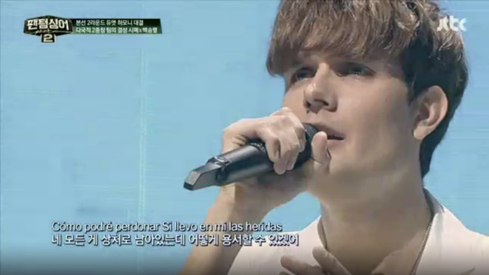 그리고 이어진 팬텀싱어 최초의 외국인 참가자이자 아이돌 그룹 EXP EDITION(이엑스피 에디션)의 메인 보컬인 시메와 미소년 중저음 보이스 백승렬 팀 대 뮤지컬 라이징 스타 박강현과 마성의 섹시 보이스 이충주 팀의 대결이었다.