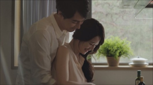 광고 속 조인성은 흰색 셔츠에 훤칠한 조각 외모를 뽐냈고, 조인성의 앞에는 베이지 색 민소매 블라우스를 입고 요리 중인 이엘리야의 청순한 모습이 담겨있다.