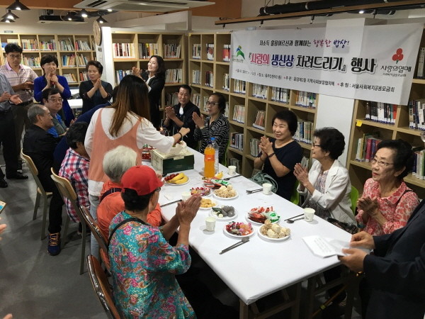 서울 은평구 응암2동 지역사회보장협의체가 최근 응암2동 주민센터에서 서울사회복지공동모금회의 이웃돕기 성금을 지원을 받아 지역내 홀몸노인을 위한 다양한 봉사를 실시했다. 사진은 ‘사랑의 생신상 차려드리기’ 행사 진행 모습.(사진제공=은평구청)