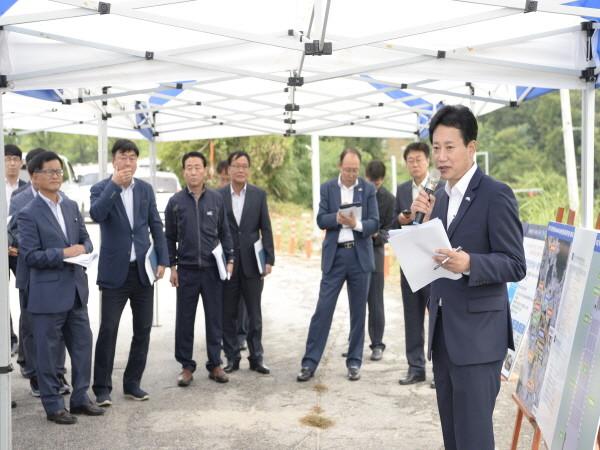 경기 포천시는 지난 11일 대진대학교 진입로 일원에서 오는 30일~10월2일 개최되는 ‘포천사랑 페스티벌·농축산물 축제 한마당’ 행사와 관련, ‘9월 찾아가는 현장 간부회의’를 개최했다. 사진은 김종천 시장이 이야기를 하는 모습.(사진제공=포천시청)