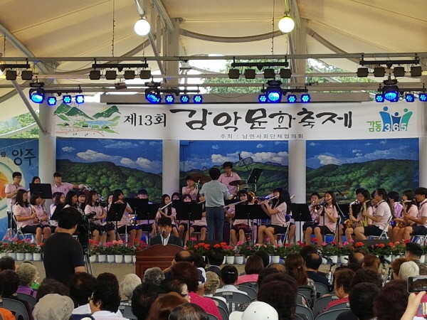 경기 양주시 남면 사회단체협의회에서 지난 10일 개최한 ‘제13회 감악문화축제’가 5000여명의 인파가 참여한 가운데 성황리에 진행됐다. 사진은 학생들이 오케스트라 공연을 선보이는 모습.(사진제공=양주시청)