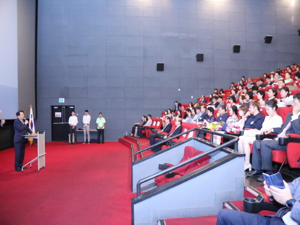 지난 13일 서울 구로구가 구로 CGV에서 사회복지기관 실무자, 복지공무원 등 250여명과 함께 '제18회 사회복지의 날' 기념행사를 개최했다. 사진은 이성 구청장(왼쪽)이 인사말을 하고 있는 모습.
