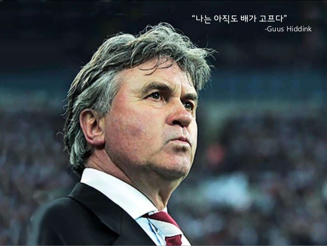 과거 한일 월드컵에서 유수의 강호들을 제압하며 16강에 진출한 히딩크 감독은 "우린 이미 (16강 이라는) 목표를 달성했다. 그러나 우리는 아직도 승리에 배고프다"라는 발언을 통해 눈길을 끌었다.