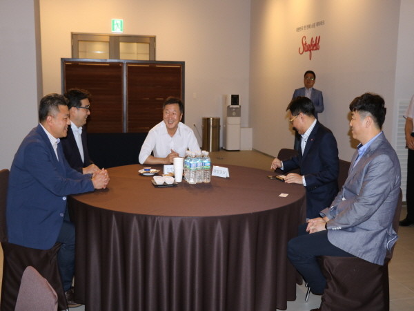경기 하남소방서는 지난 18일 다가오는 추석연휴를 맞이해 지역내 대형판매시설인 스타필드 하남점에서 안전컨설팅을 실시했다. 사진은 신종훈 서장 및 관계자들이 이야기를 나누는 모습.(사진제공=하남소방서)