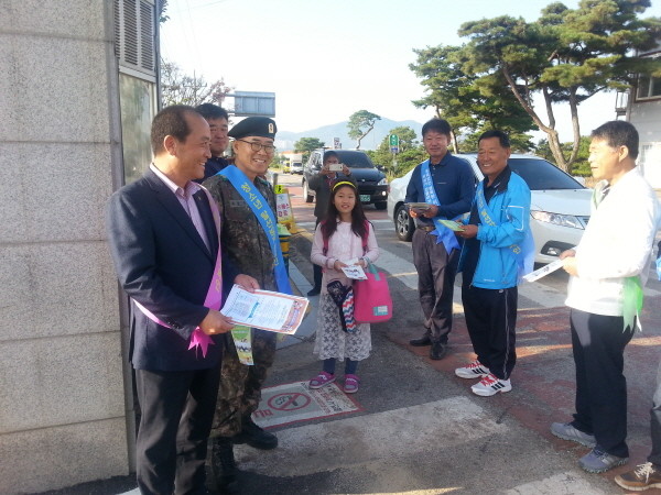경기 이천시 신둔면사무소가 지난 18일까지 신둔 초교 및 도암 초교 일원에서 학생과 학부모들을 대상으로 학교 주변 위해요인·안전 관련 유인물을 배포하고 유해환경 정화 캠페인을 실시했다. 사진은 유인물을 배포하고 있는 참가자들의 모습.(사진제공=이천시청)