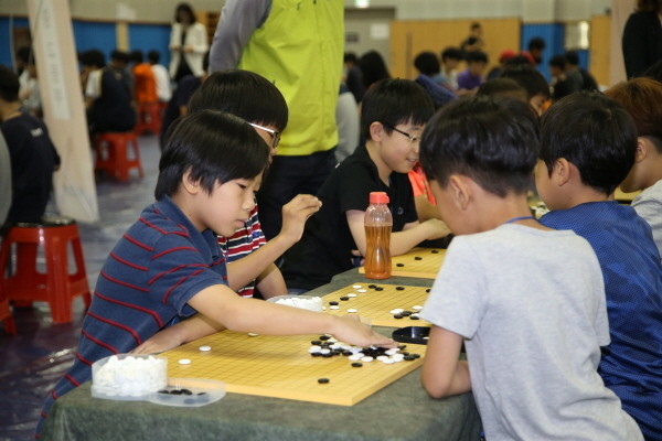 지난 24일 오후 서울 마포구민체육센터 체육관에서 '제3회 마포구청장배 꿈나무 어린이 바둑대회'가 열렸다. 사진은 대회에 참가한 어린이들이 열심히 바둑을 두는 모습.(사진제공=마포포토)